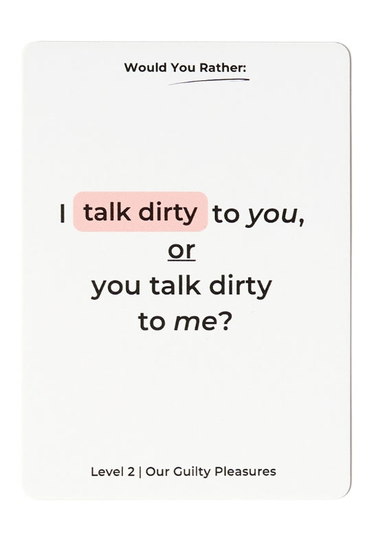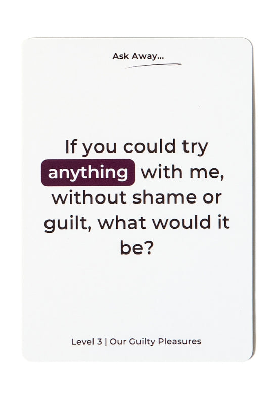 Dive into 7 diverse 'connection cards', each thoughtfully designed to suit different moods and desires. With 3 intensity levels designed to gradually heat, you can rest assured our couples cards will unlock delicious conversation! Whether it's a cosy evening in or a much-needed vacation, our intimacy cards are tailored for every couple's journey.